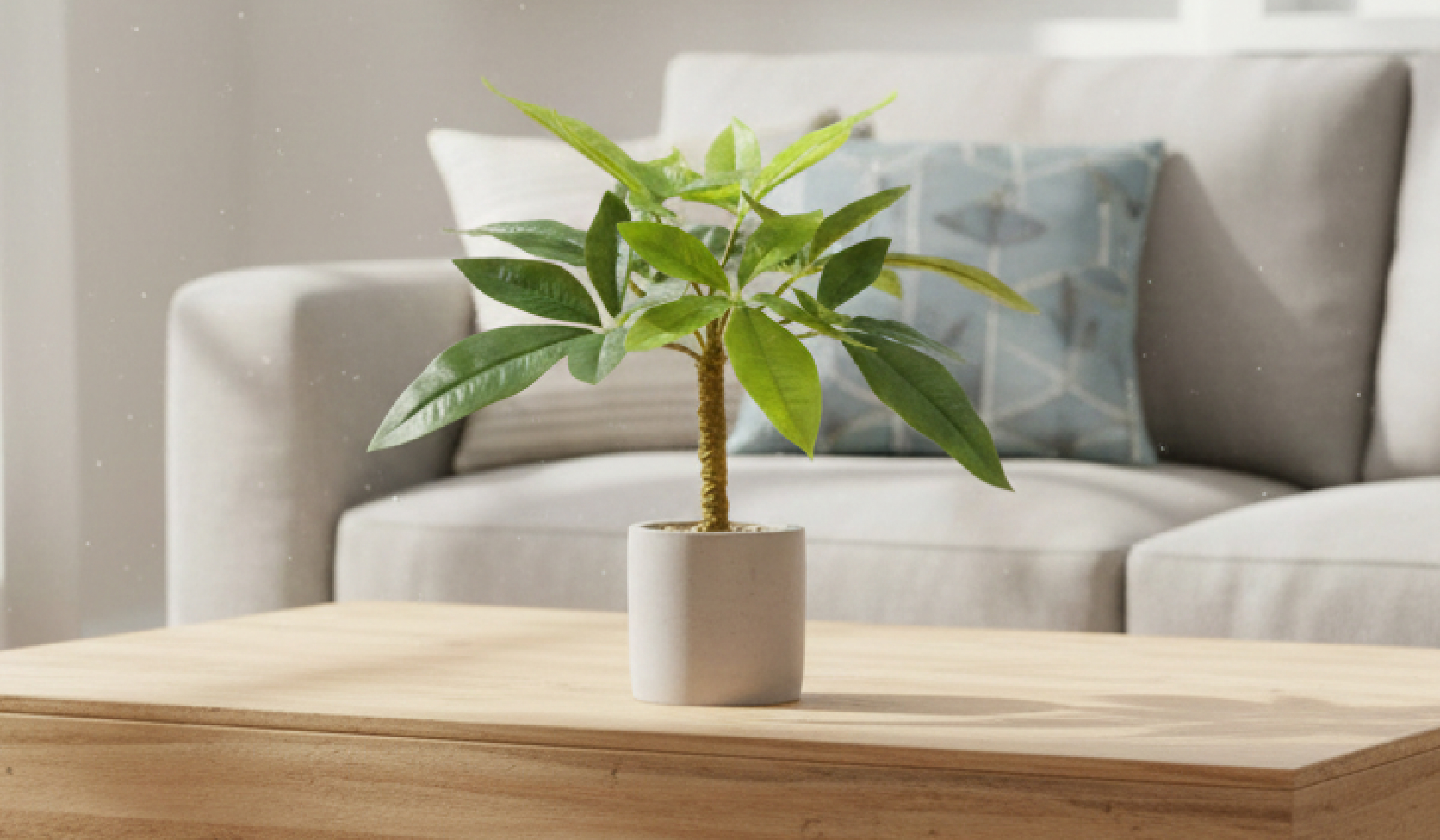 高さ約40センチほどのパキラの木。リビングのワンポイントやオフィス内のグリーンにおすすめ。
